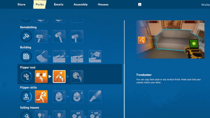 To duplicate items or finishings, you need to upgrade your Flipper Tool and unlock two specific perks. You can upgrade your Flipper Tool by using it frequently. This won’t be a hard task, as initially you will use this tool to sell items. But the more you use it, the more you can level it up and unlock new features. Each time you level up the Flipper Tool, you can get perk points. You can then invest these points in certain perks. Now, the perks you are looking for are listed below.
