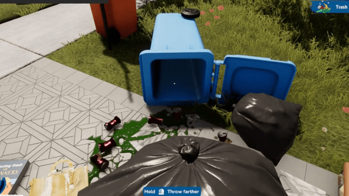 This achievement is a bit tricky to complete. To do this, you need to toss the trash bag into the garbage bin at a distance of 10 meters. You can repeat this task as many times as you want, so even if you miss the first time, you can always try again. You just need to land one trash bag into the bin to unlock this achievement, but you need to aim right to land a perfect throw.