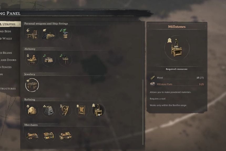 The Millstone is an important crafting station in the game that allows you to convert natural resources into powder, which you will require when making processed items such as flour and baked products. When unlocking the Millstone, it will become an important part of your food chain process, particularly if you want to cook baked items. The Millstone must be built under a roof and be located near the Bonfire for it to work effectively.
