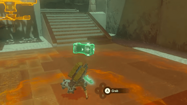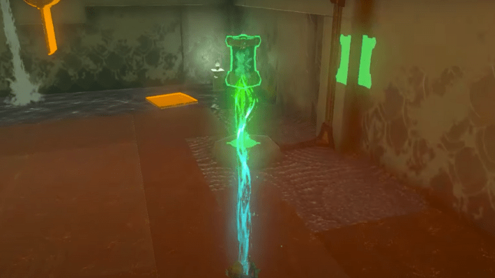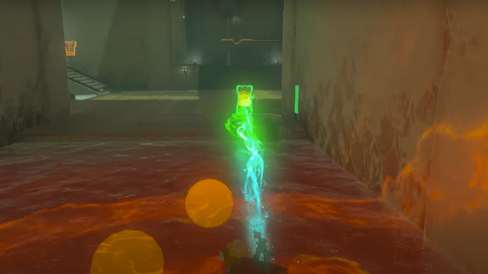 • When you enter the shrine, pick up the fallen canister on the floor and take it up the stairs on your right
