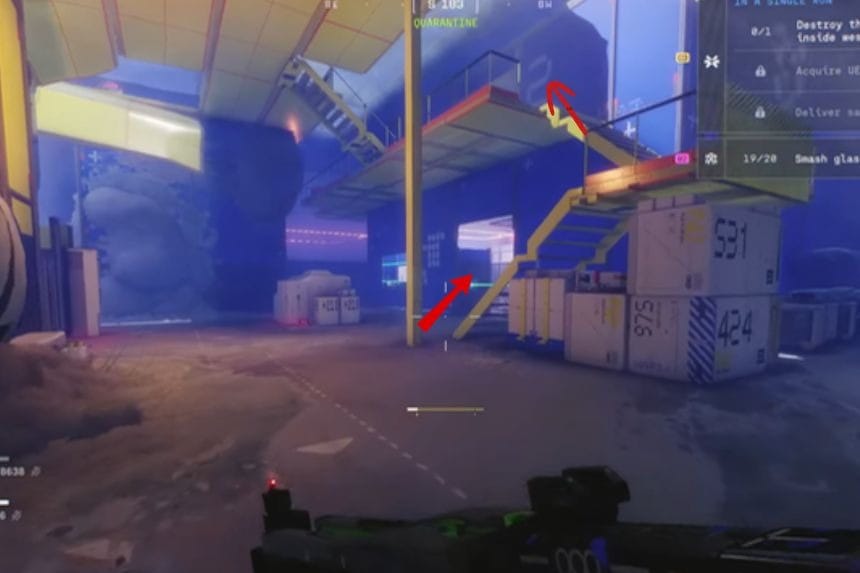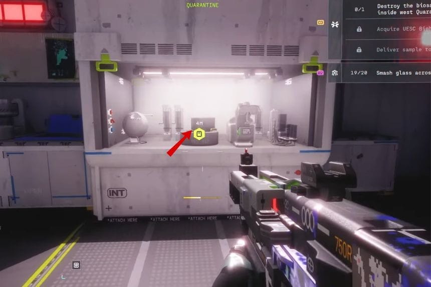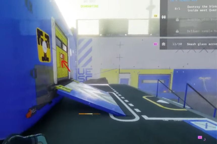 Within the building, locate the yellow structure, but be aware of potential traps that could have lasers and can disable your UV sources for approximately 20 seconds. Go upstairs using either the outside stairs or the tunnel system to access the area where you will find all items that will be required to sabotage the equipment that’s on the table.