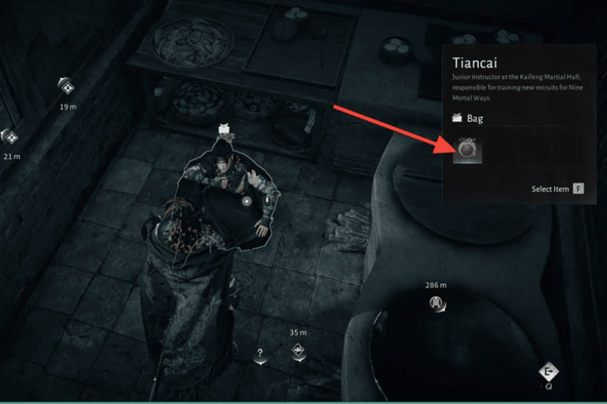 Time to “borrow” one. Head out to a shed and find Tiancai. After he refuses to give the token to you, activate Wind Sense and interact with his bag. This allows you to get the token quietly without a fight. Go back to the courtyard and head inside to meet Elder Tian. Talk with him to obtain the Rope Dart, which you will use in the next part.