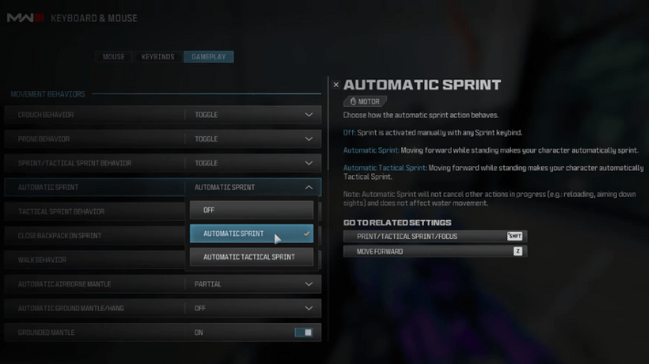 - Over here, go to Automatic Sprint and make sure Automatic Sprint is enabled in the drop box.
