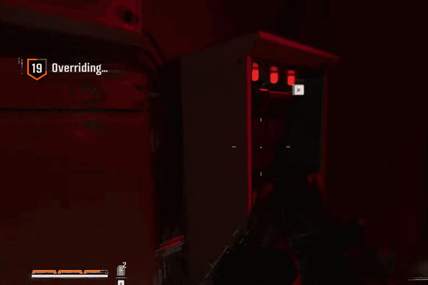 Once you enter the Cognitive Research area (the red circle of the map), take the left path to find the Director’s Keycard. There, you’ll come across a computer with an observation room behind it. Turn away from the computer and look up to the right, use the grappling point to swing upwards. After that, jump into the water and swim through the tunnel at the end of the red path. Climb out of the water, and after taking out a zombie, you’ll spot a door with a keypad on your left. Use the blacklight to reveal the numbers that are part of the code, then rearrange them if they’re in the wrong order. The code will be different for every time.