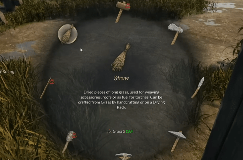 Once you have collected grass, head over to your crafting wheel (where you craft tools) and hover over the icons. You will find the icon to craft straws. You will need two grass to craft one straw.