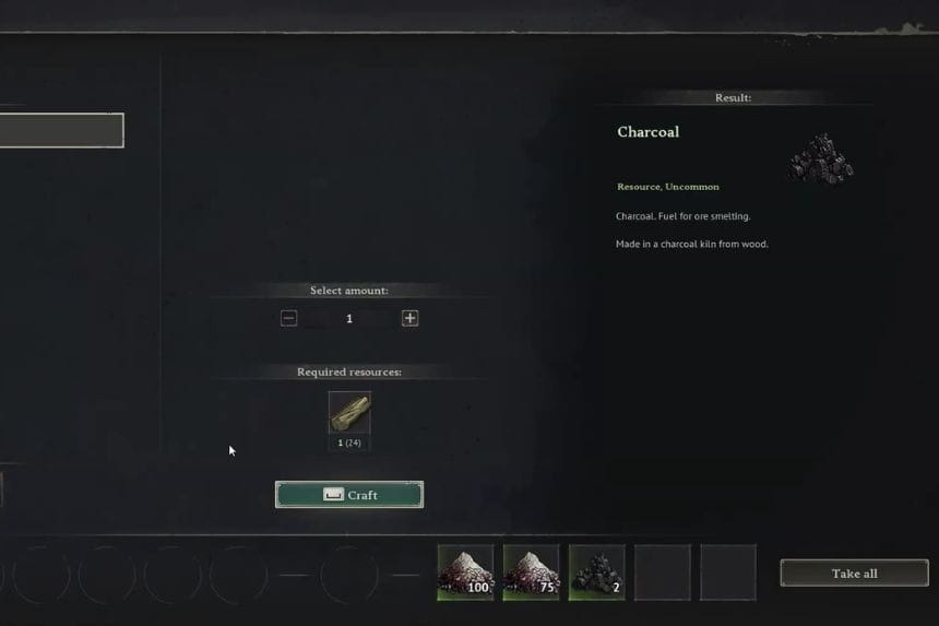 This is beneficial because not only is Ash useless in the game, but you can also craft more items from Ash, including gunpowder. This process is quite straightforward; thus, if you have time and enough Hardwood, it’s a good idea to set up a Charcoal Kiln to make some Charcoal.