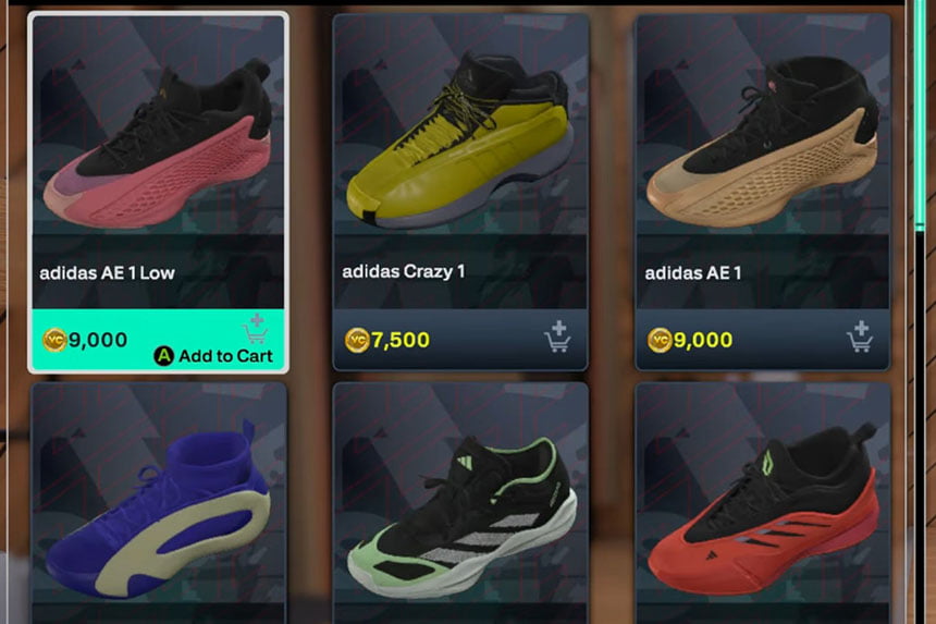 In NBA 2K25, you can find both Anthony Edwards AE 1 and Donovan Mitchell D.O.N. Adidas sneakers in the Legends Sports store. Visit the store, talk to the shopkeeper, and browse the Adidas options.
