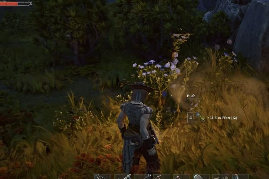 For the flax, you need to have access to the Foothills zone first. To unlock the Foothills zone, you need to defeat the primary boss, Thomas Richards, who is found in the Coastal Jungle. After defeating Thomas Richards, the Foothills zone will become accessible for exploration. It is in this zone that you will be able to find flax. Flax can be identified by its small blue flowers. While harvesting flax, you also have a chance of getting flax seeds, which can later be planted.