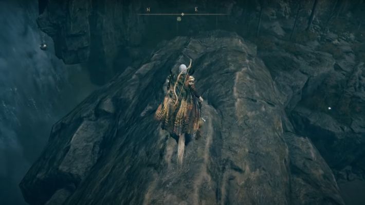 From there, head west and once you reach the edge of the cliff, look to your right. You will spot a pot that is sticking to the side of the hill. Shoot it down and you will get Mushroom Seller’s Bell Bearing [1]. For Mushroom Seller’s Bell Bearing [2], make your way to Ellac River Downstream. With Torrent’s help, make your way down the waterfall by jumping on the boulders below. On your left is a stone pathway that crosses over to the other side of the waterfall. Go across it and sticking to the waterfall is the pot having Mushroom Seller’s Bell Bearing [2]