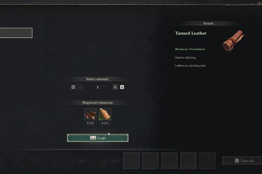 Tanned Leather is a raw material that you can craft through tailoring. You will find yourself needing it frequently as you advance in the game. The equipment needed is a Tanning Rack. All you need is three Rough Hides and one Tannin. The process of making it is quite easy and won’t take much time. It takes only forty-five seconds to finish crafting Tanned Leather.