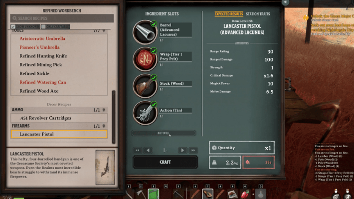 - Make your way to the Refined Workbench to find the crafting recipe for the Lancaster Pistol