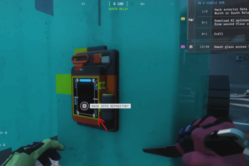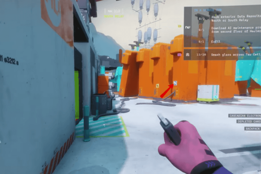 In Marathon, the contract location for hacking the data repositories can be difficult to locate at South Relay. There are two hacking terminals, and this guide will help you locate both by using prominent landmarks (i.e. orange or cyan pillars) which will help you efficiently complete the mission without searching inside buildings.