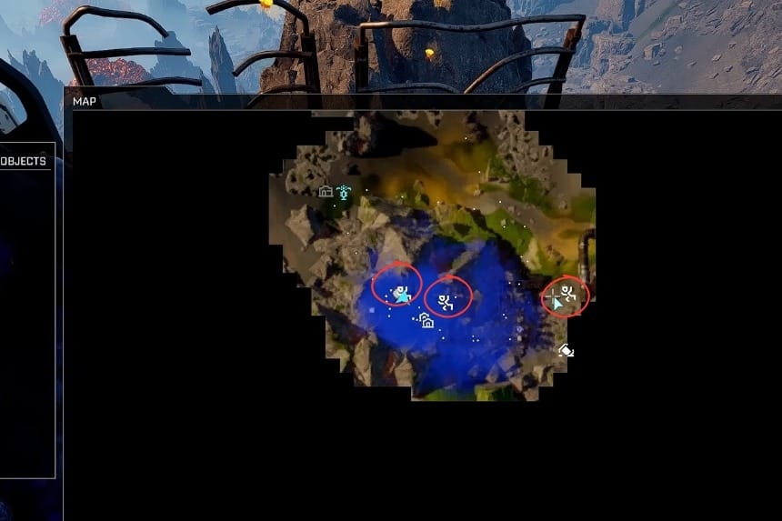 From the initial point of departure, the quickest route to safety will take you towards the Geo Scanner, through a mountain pass, and then back up into the Tower area.