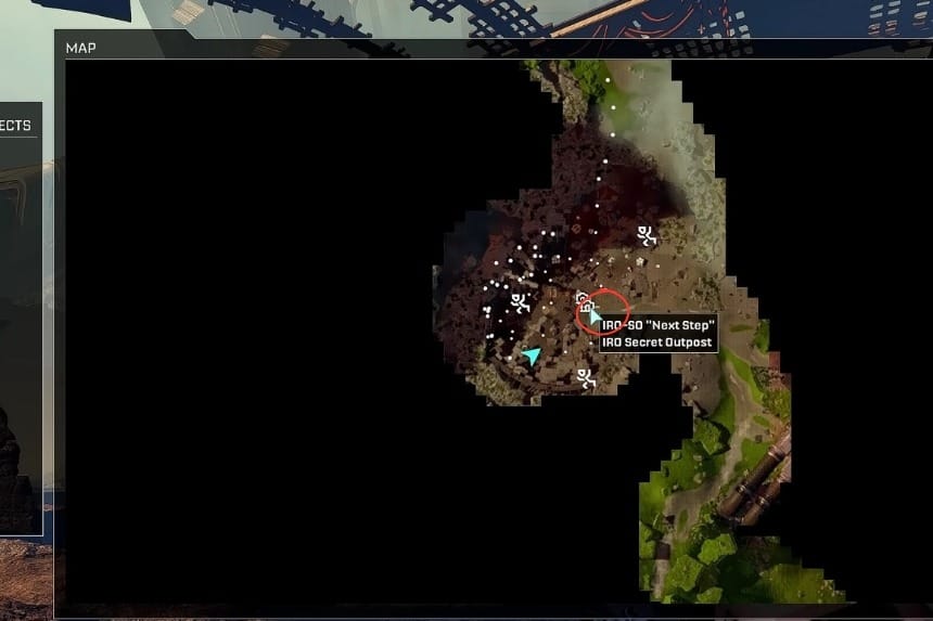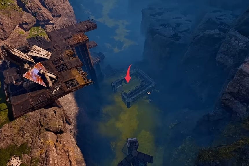 The safest route will involve following alongside the mountains with higher elevation to avoid concentrated enemy areas, navigating through the Geo Scanner, below the Ark, and moving through the liquid-filled zone before arriving at the outpost and getting the blueprint.