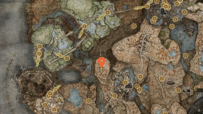 To reach the Northern Nameless Mausoleum, you first need to unlock the Ancient Ruins Base site of grace. From there, keep heading southwest along the border of Rauh Ruins, close to the area where you pick up the map fragment. While heading southwest, you will come across two spirit springs. The first one is a weaker spirit spring, and the second one that is a bit further southwest is blocked.