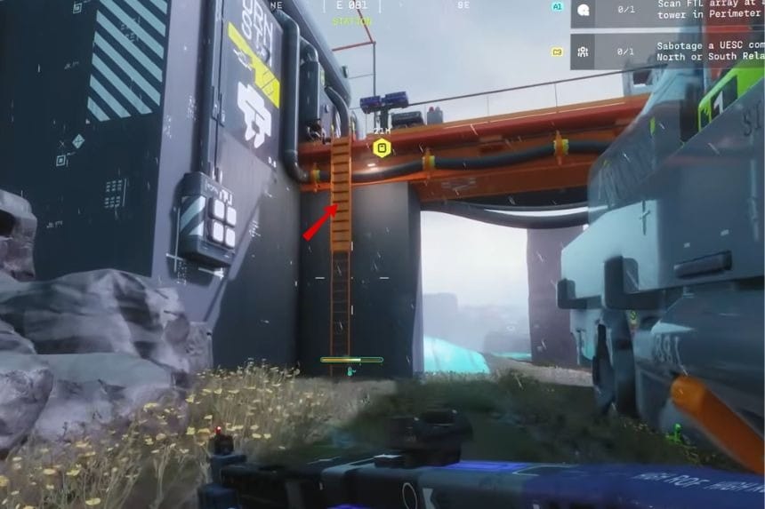 The town of Station is a place where you can carry out this task. When you reach Station, find the ladder up to an orange platform (exact location is marked on the map), then locate the area in the back of the platform where the radio tower is.