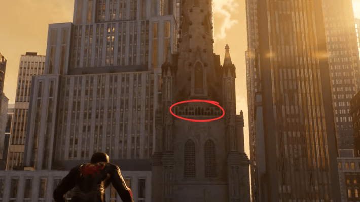 You can get this trophy as Miles and not as Peter. Once you get access to free roam, switch to Miles by moving the touchpad left and pressing the square button. If Miles is your default, then you won’t have any trouble getting this trophy. After that, make your way to the  Financial District and find the Trinity Church. This church is located right in the middle of the district, so you won’t have much trouble finding it. In case you are unsure of where to go, you can check out the map above.