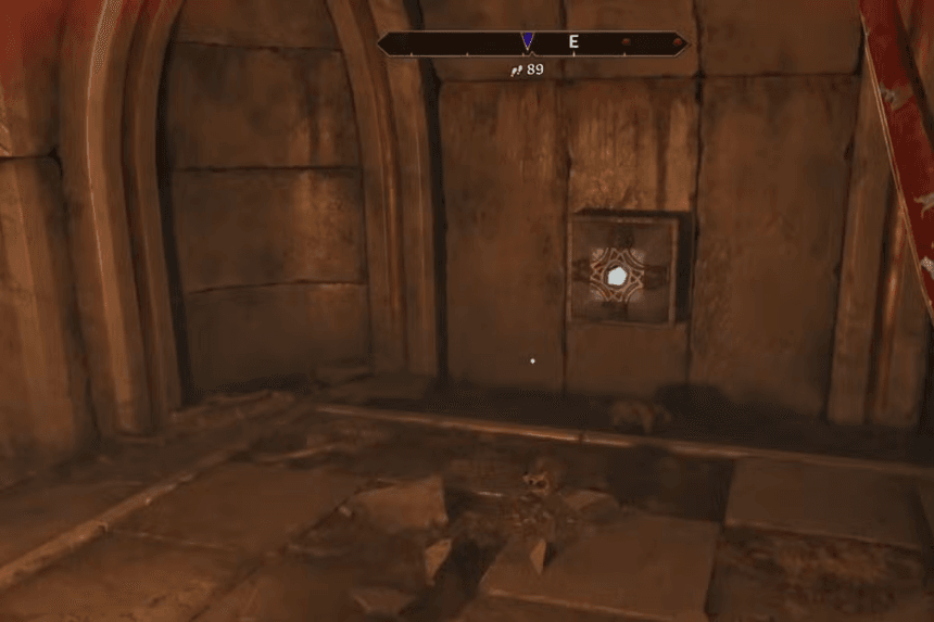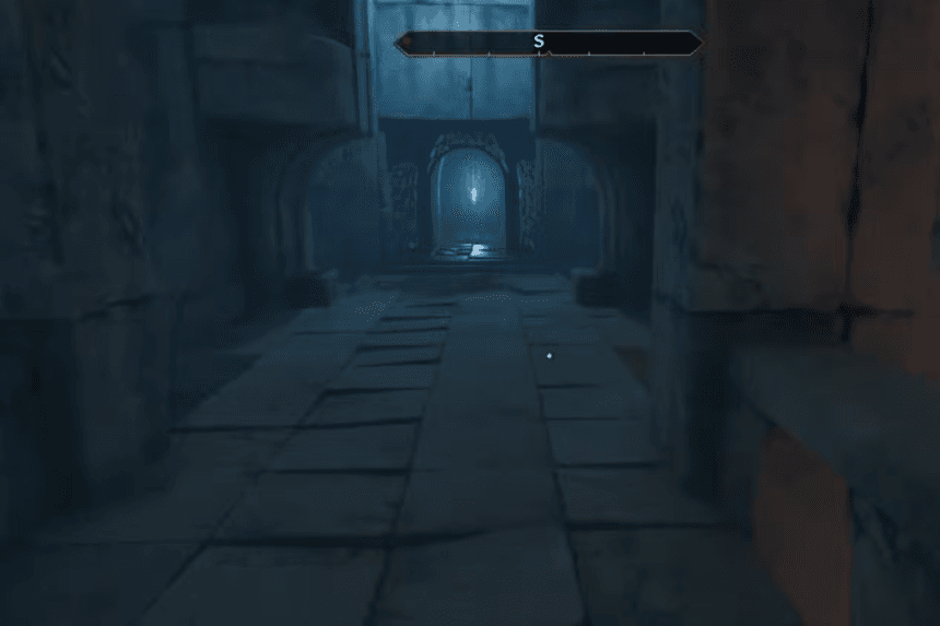 Enter the north wall room and step on the pressure plate to open a secret path. Head west down the path, ascending staircases until you get to the “Stone Door to Miscarcand.”