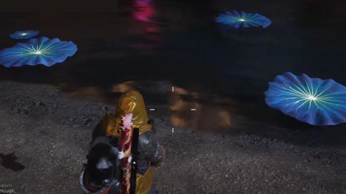 To get this weapon attachment, make your way to Red Sands, which is in the late game desert region. You have to be level 45 and above to clear all the areas within this region. While here, head over to Sunshine Farms and travel southwest towards 1817, -739. You will reach the edge of a stream and the bottom of the cliff. If you walk to the edge of the stream, you will notice three giant blue petals or lily pads. You need to jump on each pad and light them up to get a loot crate