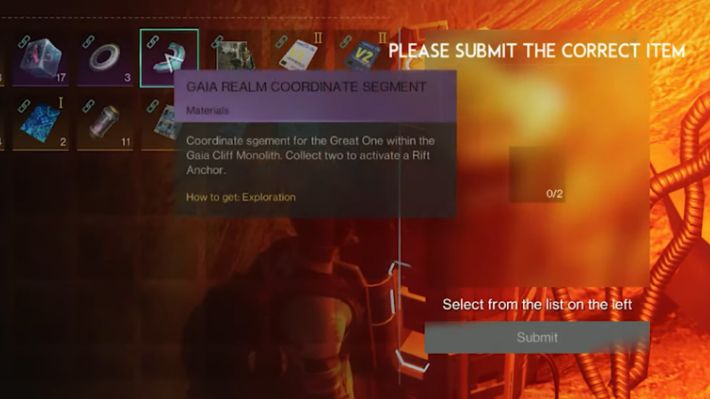 You can then interact with the Rift Anchor and go to your inventory > Specials, then select the Realm Coordinate. Drag and drop it on the drop box to add it to the Rift Anchor and gain access to the mechanism. Sometimes, if you are too far ahead of the main story quests, then you will be locked out of certain progression items until you complete the main story objectives. In short, progress through the storyline and you can get access to the Rift Anchors in due time