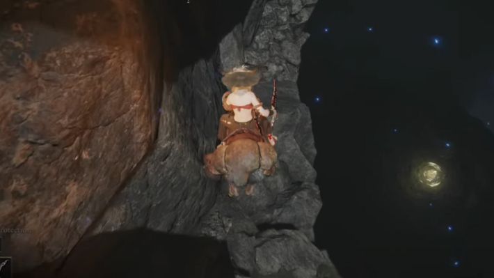 You will have to jump across the platforms till you can find some footholds that will help you jump down. Follow the stream and you will find Miquella’s golden cross and Fissure Cross site of grace