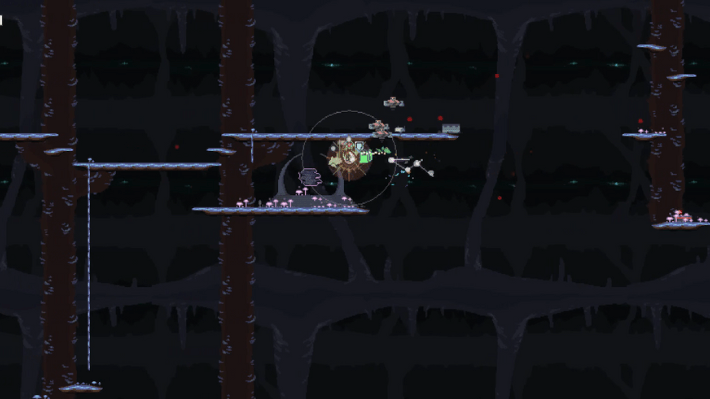 If you look further right, you will notice some narrow platforms stacked on top of each other. Hidden between the flora of the bottom platform is a switch. The switch can only be activated by AoE explosives. Bandit’s dynamite throw and Enforcer’s Crowd Control are some ways you can activate the switch. Headstomper and the Gold Explosive will also work with characters that don’t have explosive abilities.