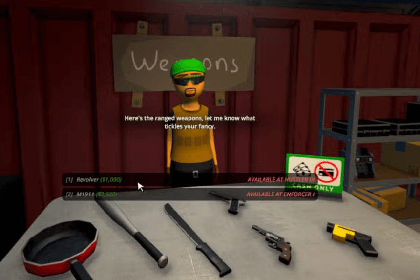 You’ll have to level up to rank Hoodlum V before you can buy the Pump Shotgun. After that, you’ll be able to locate the Warehouse in front of the Taco Ticklers restaurant. This Warehouse is where you can gain access to the black-market weapons throughout the game.