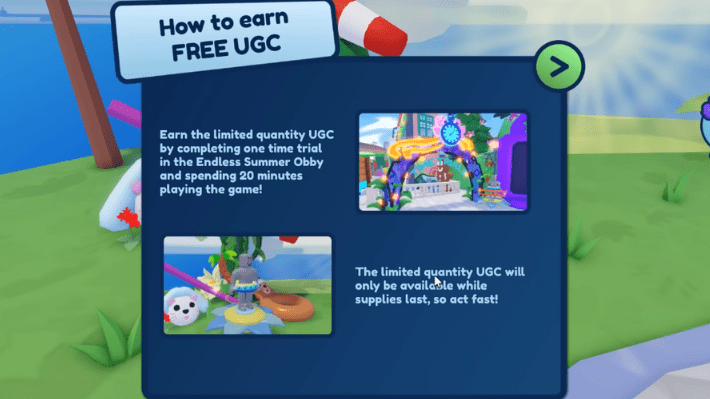 To get the Tropical Floatie, you need to clear the newest obby in the Endless Summer update. Make your way to Garden Galaxis in the main lobby. From there, turn around to find the Endless Summer obby right beside the sign that says Otter Sanctuary. Once inside, hit the checkpoint in front of you and Meril will appear with some pointers. You need to follow Meril’s instructions and make your way to the cannon at the very top of the obby. The path towards the cannon can get confusing, so here are a few pointers to keep in mind.