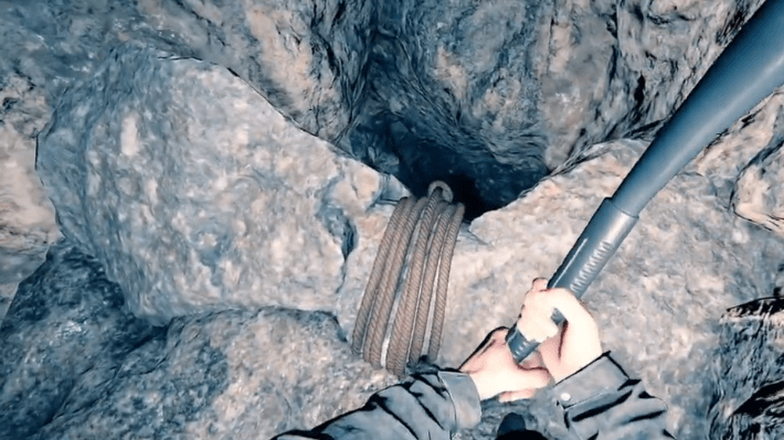 Once you enter the cave, the first item you can pick up is the blueprint for the Enchantment Table. We have an entire guide on where to find the Enchantment Table blueprint in Sons of the Forest Patch 12. We will continue this guide from where you have picked up the blueprint. Beside the blueprint you will find a rope that will take you down. Once you reach the bottom of the cave, follow the path ahead till you reach some wooden crosses.