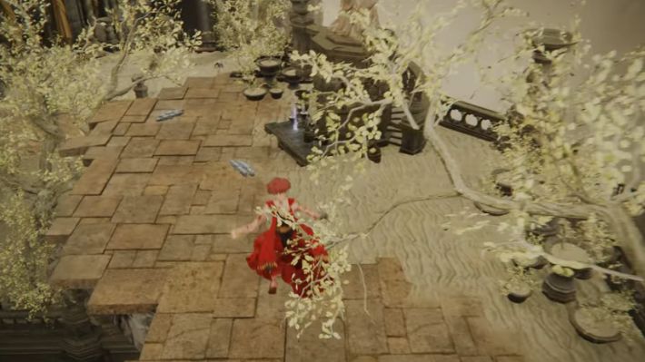 Now that you are within Enir-Ilim, you have to find the First Rise site of grace. This isn’t too far, as all you have to do is find several stairs that go up. Keep going up and you will find the site of grace. From there, head southwest and go past the archway towards the stairs leading up. You will reach the courtyard, after which you have to go up another flight of stairs southeast. Look to the north after reaching the top and you will find a Tree Shaman guarding an altar on the platform across. Use the branches to get across, defeat the shaman and loot the altar to get Spira Incantation.