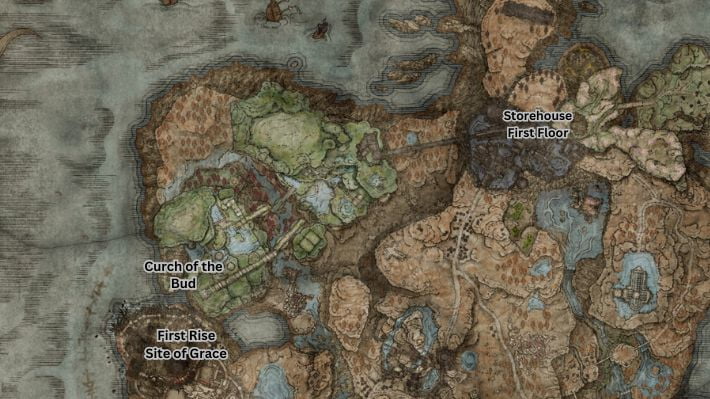 Next, exit via the elevator in Storehouse, First Floor and travel through the bridge past West Rampart. Keep going west till you reach Rauh Ruins. Towards the very end of the region you will come across Scorpion River Catacombs. From there, travel south to find the Church of Bud. Within this building is another enemy you need to defeat called Romania, Saint of the Bud. After that, make your way south of Church of Bud to find the sealing tree and burn it