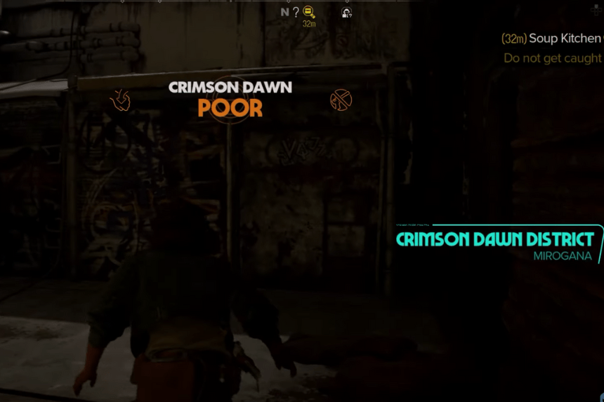 It will be easier to get into the soup kitchen if you have a good reputation with the Crimson Dawn. If you don’t, you’ll need to sneak into their district.