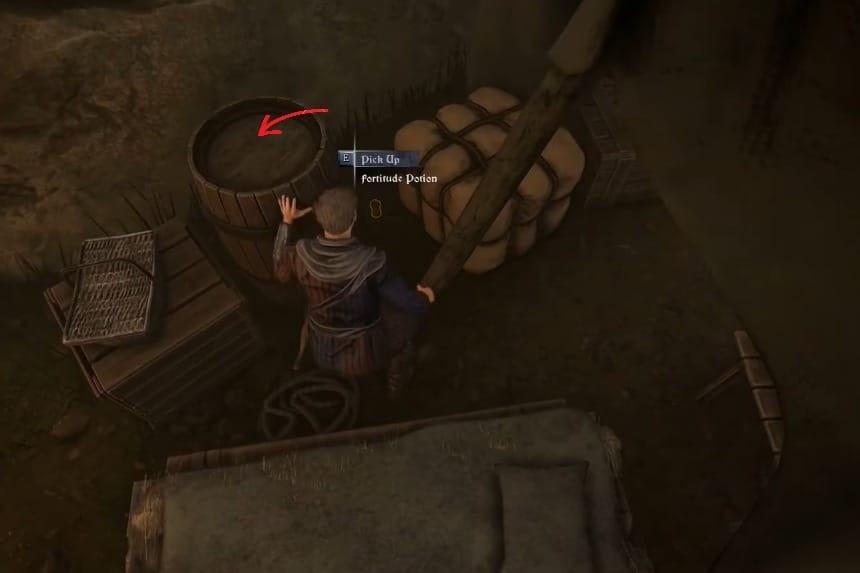 Before continuing with your main quest, you want to make sure you obtain a hidden stat-boosting item. There is a barrel located right next to the physician where you can find the Fortitude Potion. If you consume this potion, your Fortitude will be permanently increased by one.