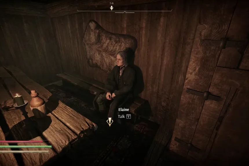 To begin the quest, head to Ron’s Tavern in the Horns of the South. Inside the tavern, speak to Lady Elaine, an adventurer and scholar that is fascinated by lost knowledge. She introduces you to the story of an old vessel, The Andraste, and will give you a book entitled The Last Voyage of Andraste. Your first mission is simple—read the book, then answer some questions about lore that Elaine poses to test if you’ve been paying attention.