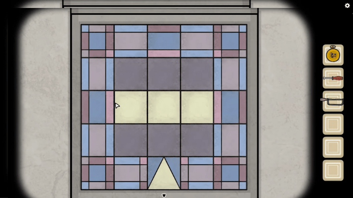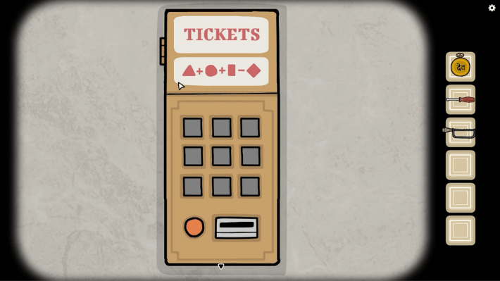 To solve the puzzle, first take a look at the symbols on the ticket booth. You can find a Triangle, Circle, Rectangle, and Diamond. After that, take a look at the paintings above the ticket booth. There are two paintings side by side in this room, and another two paintings when you go right. If you take a closer look at the paintings, you will find a white rectangle, diamond, circle, or triangle at the bottom, and certain squares within the paintings are marked as white. Note down the squares marked white then head back to the ticket booth.