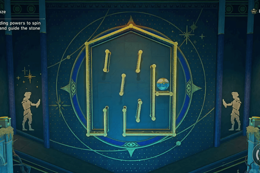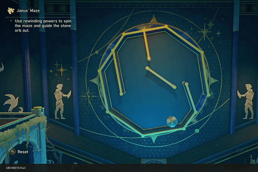 Janus’ Maze consists of nine individual puzzles, each found in the shape of a movable labyrinth which directs a marble into a particular chute or destination. You can switch between puzzles using the Maze Scroll Fragment in the room. A neighboring mechanism starts each test, and the underlying mechanic is turning the maze to create paths for the marble while avoiding dead ends.