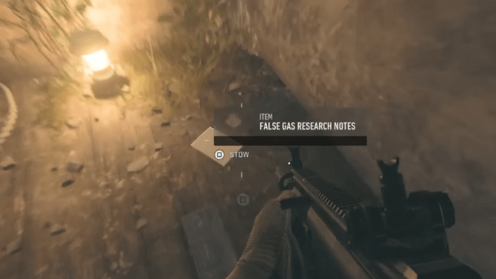 Once you reach the church, head inside and find the ladder that takes you up to the second floor. Right after you reach the top, check the floor to find the false gas research notes item. You need to pick up this item first before you can place the researcher’s notes here. You should also ensure that you have at least 2 vacant inventory slots. After you pick up the note, place the researcher’s notes in the same location. Sometimes this mission will glitch if you try to place the researcher’s note first instead of picking up the false note. If that happens, then you will have to restart the mission and complete it again.