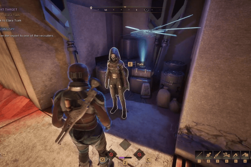 To speak with Elara Tuek and take on “The Next Target” contract, you need to go to a location referred to as Harko Village. It is a middle hub area of the game that will be important for many contracts and story branches.