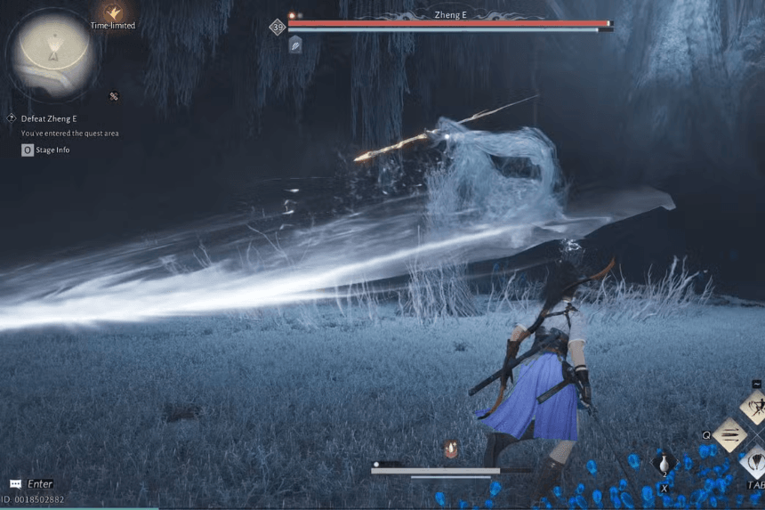 These attacks are followed by a diving strike that tracks your location. Sidestep the waves instead of rushing so that you have enough strength remaining for the final hit. Later in the phase, Zheng E recreates the ice platform and ice spears. Move in one direction to get around them easily.