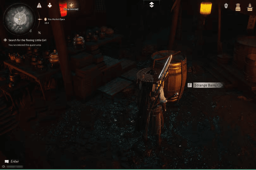 When Dao Lord falls, continue through the cave until you reach the Ghost Market. Find Little Fu hiding in a Strange Barrel, then track the footprints south into the Ghost Market.