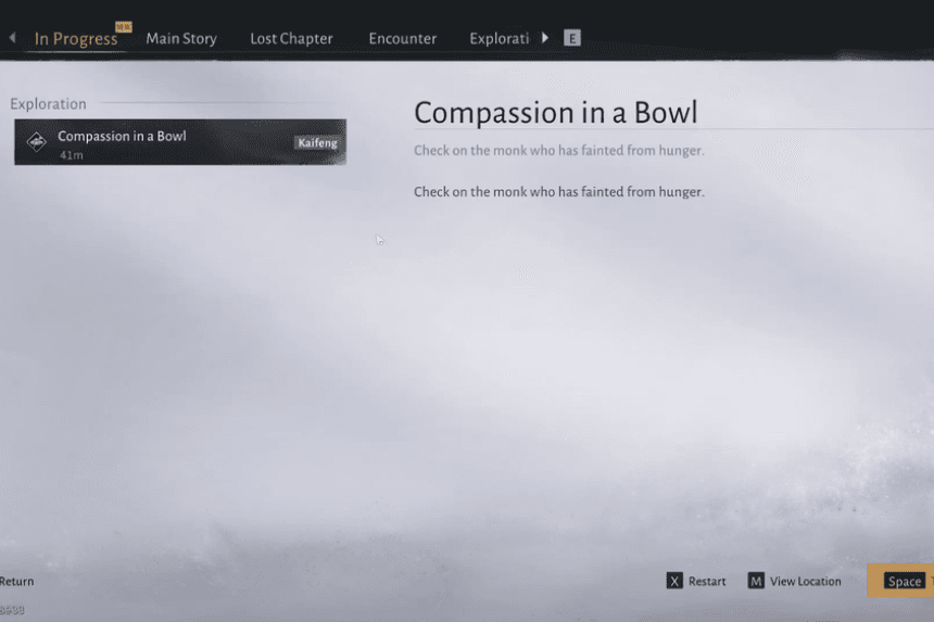 Compassion in a Bowl is a small exploration quest tucked inside Kaifeng City-one of those “blink and you’ll miss it” moments that reward you just for being helpful. All you have to do is check on a starving monk and cook him a quick meal.