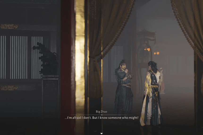 Put on your new clothes and follow Zhao into Revelry Hall to floor three, where the Ember of East is kept. A cutscene ensues, and then things get wild.