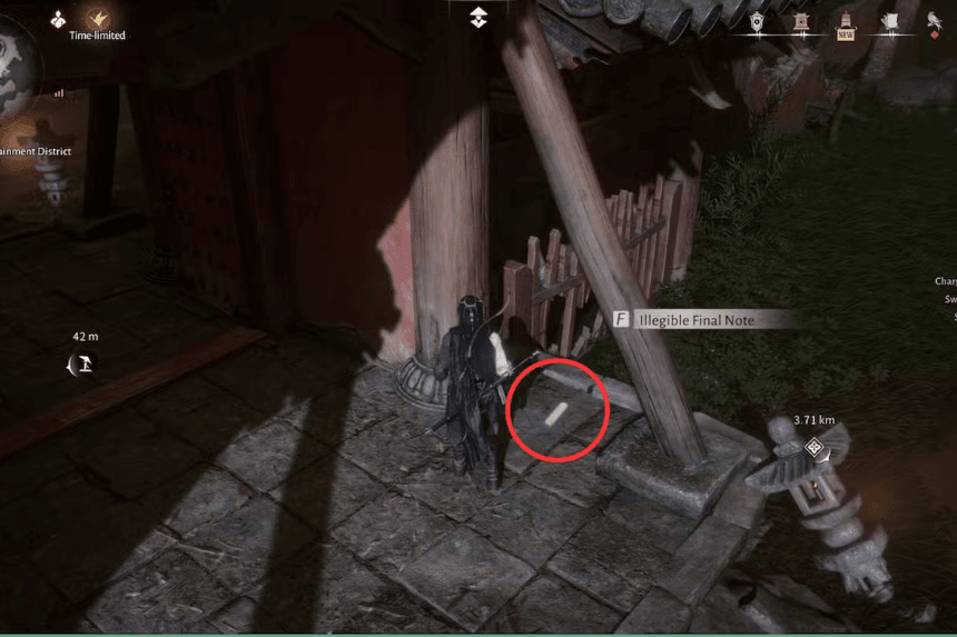 The Illegible Final Note lies on the ground near the temple entrance. If it’s not easy to spot, there are Assist Signposts just outside the temple where the note is placed side by side with them.