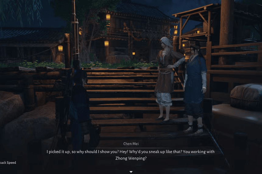 Speak with Zhong Wenping several times, allowing the conversation to conclude naturally. Once the dialogue options appear: